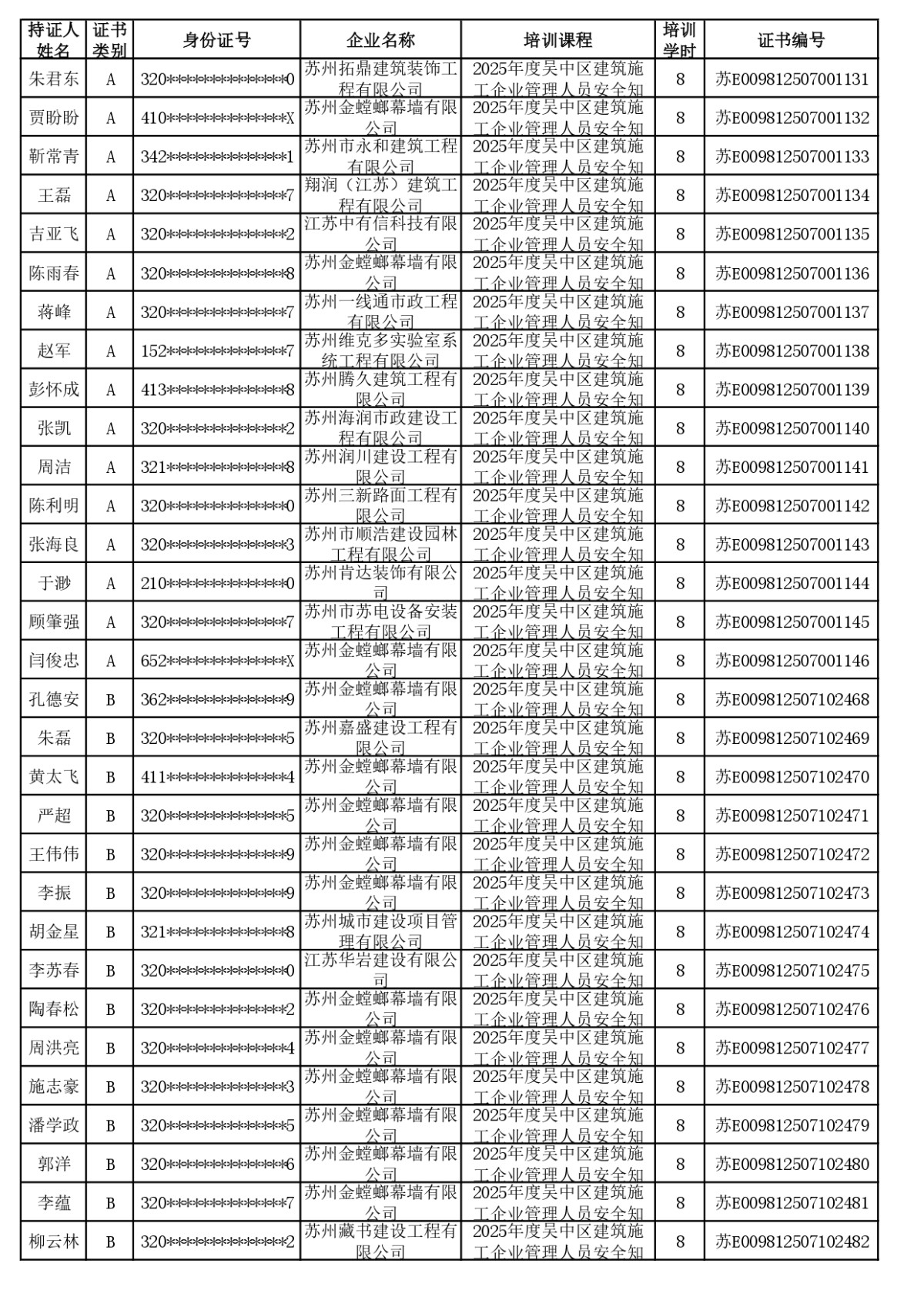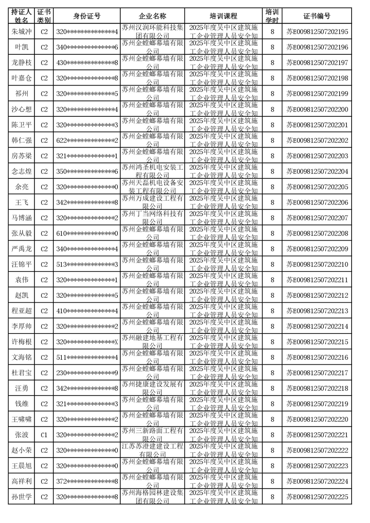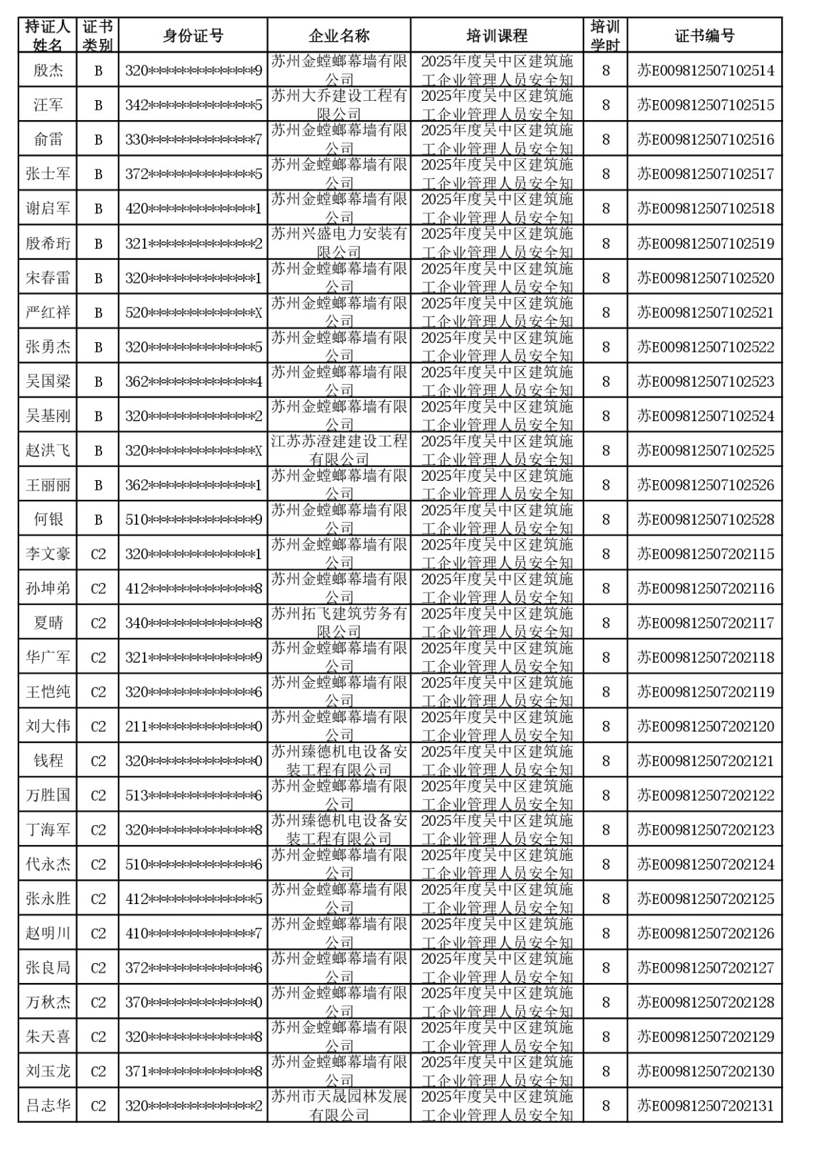 安全员继续教育合格公示(截至2025年10月31日13:00已学完学员)