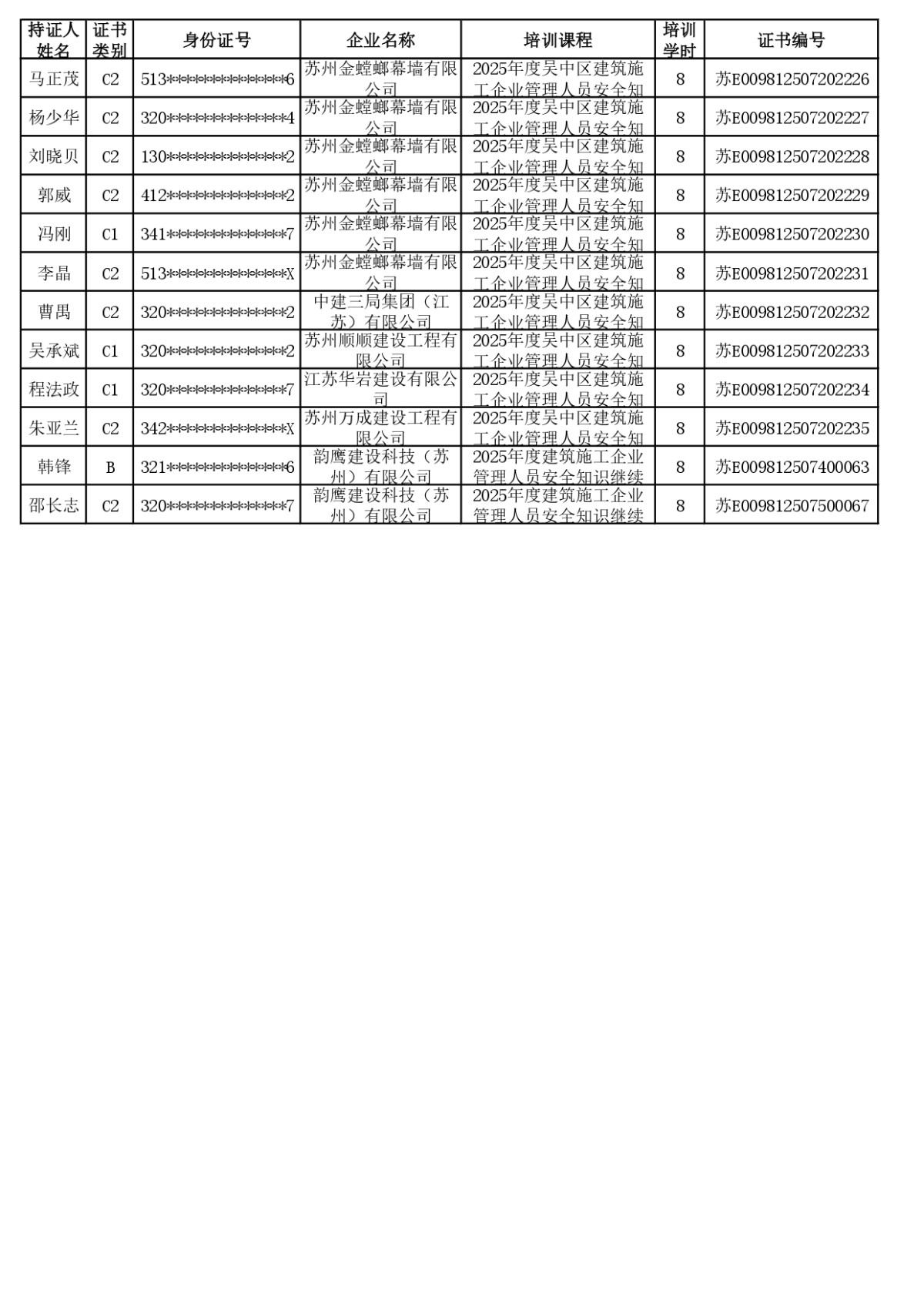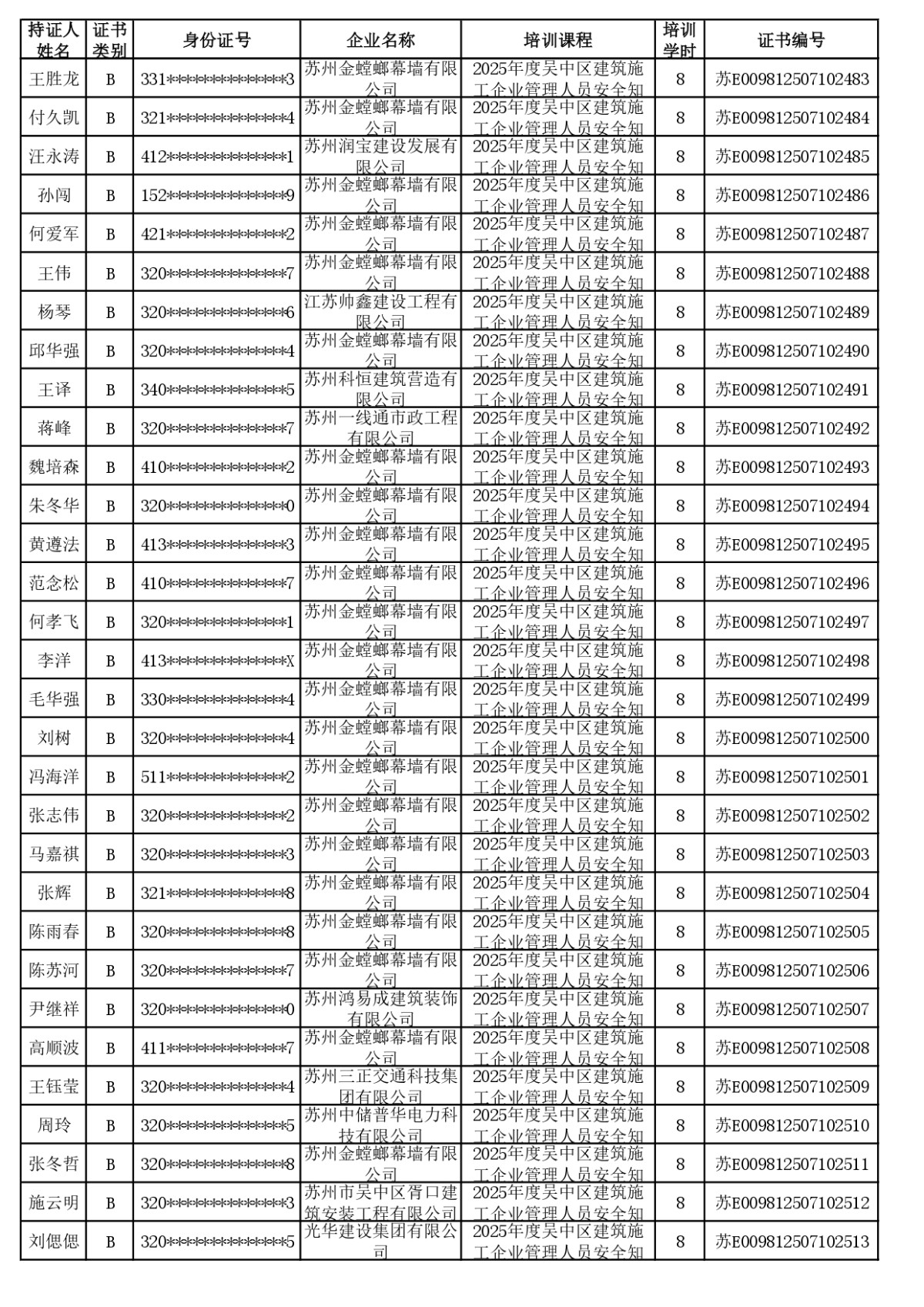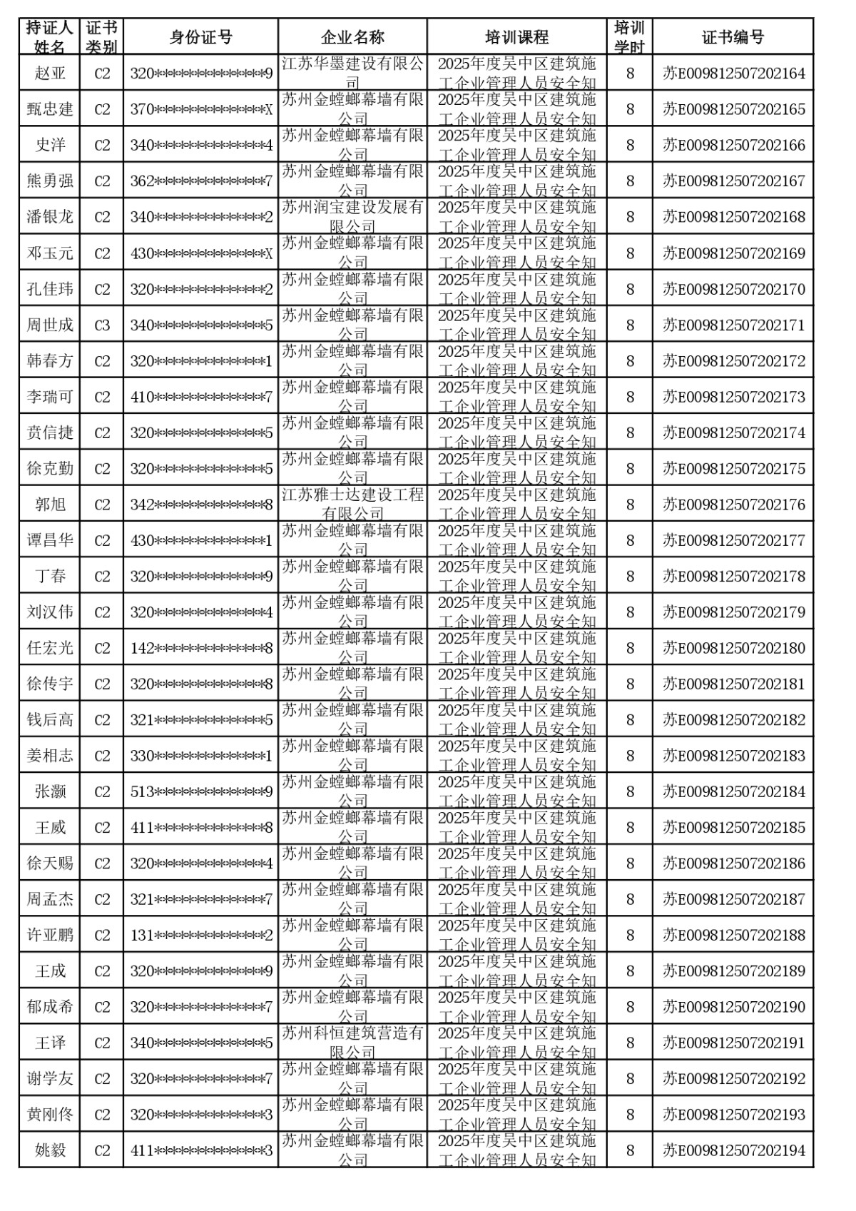 安全员继续教育合格公示(截至2025年10月31日13:00已学完学员)