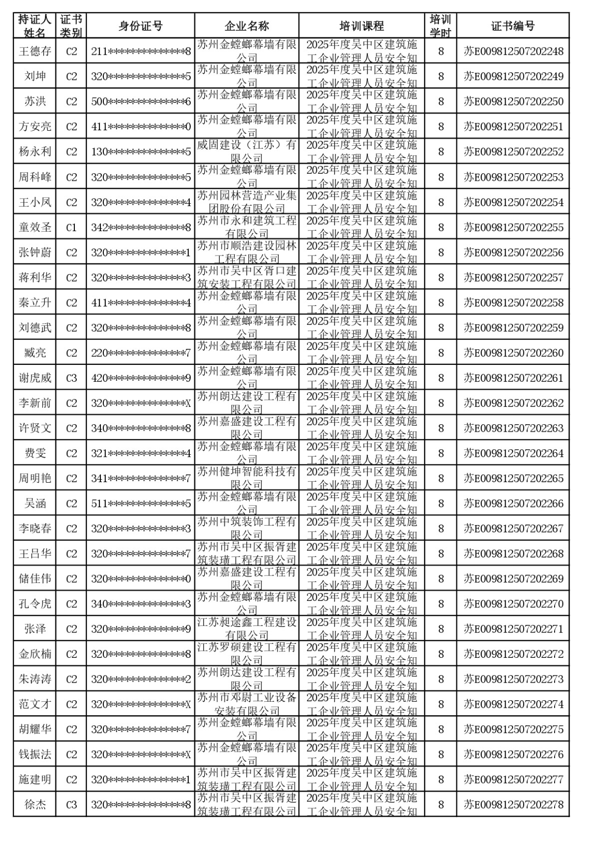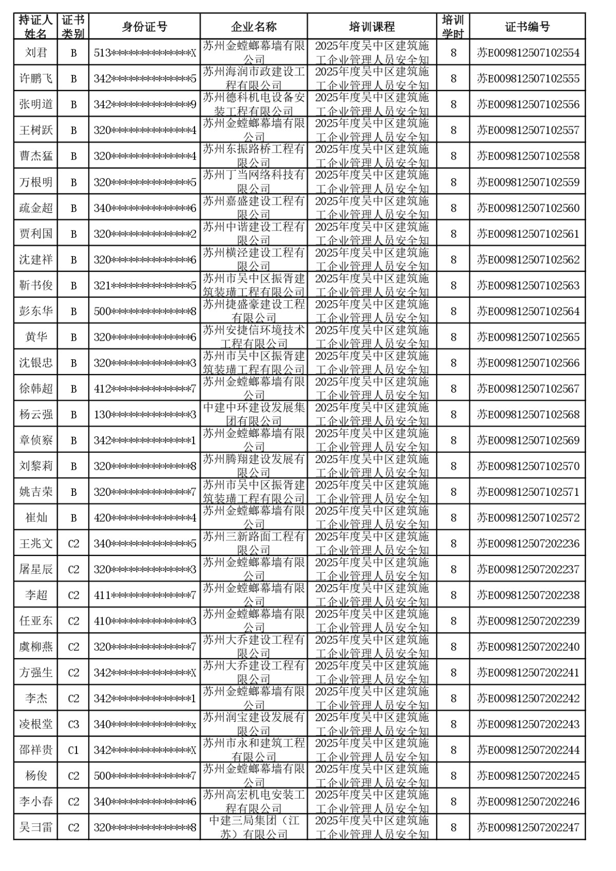 安全员继续教育合格公示(截至2025年11月6日24:00已学完学员)