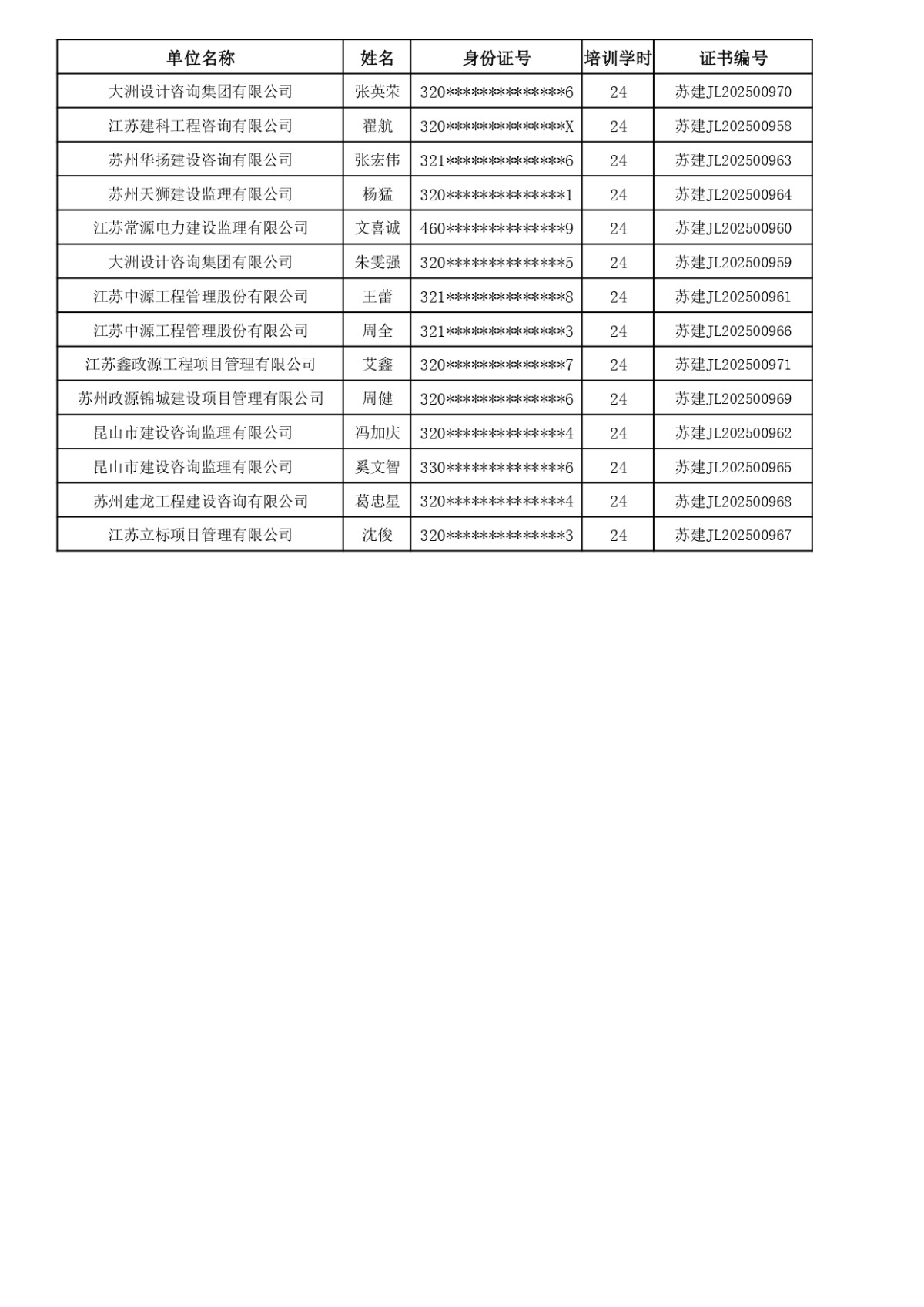2025年监理人员业务培训完成名单公示(截止到2025年11月11日学习网上发放证书的学员)
