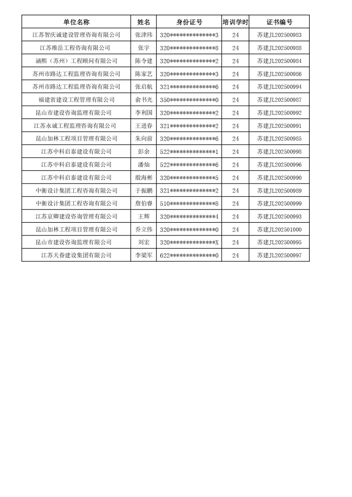 2025年监理人员业务培训完成名单公示(截止到2025年11月25日学习网上发放证书的学员)