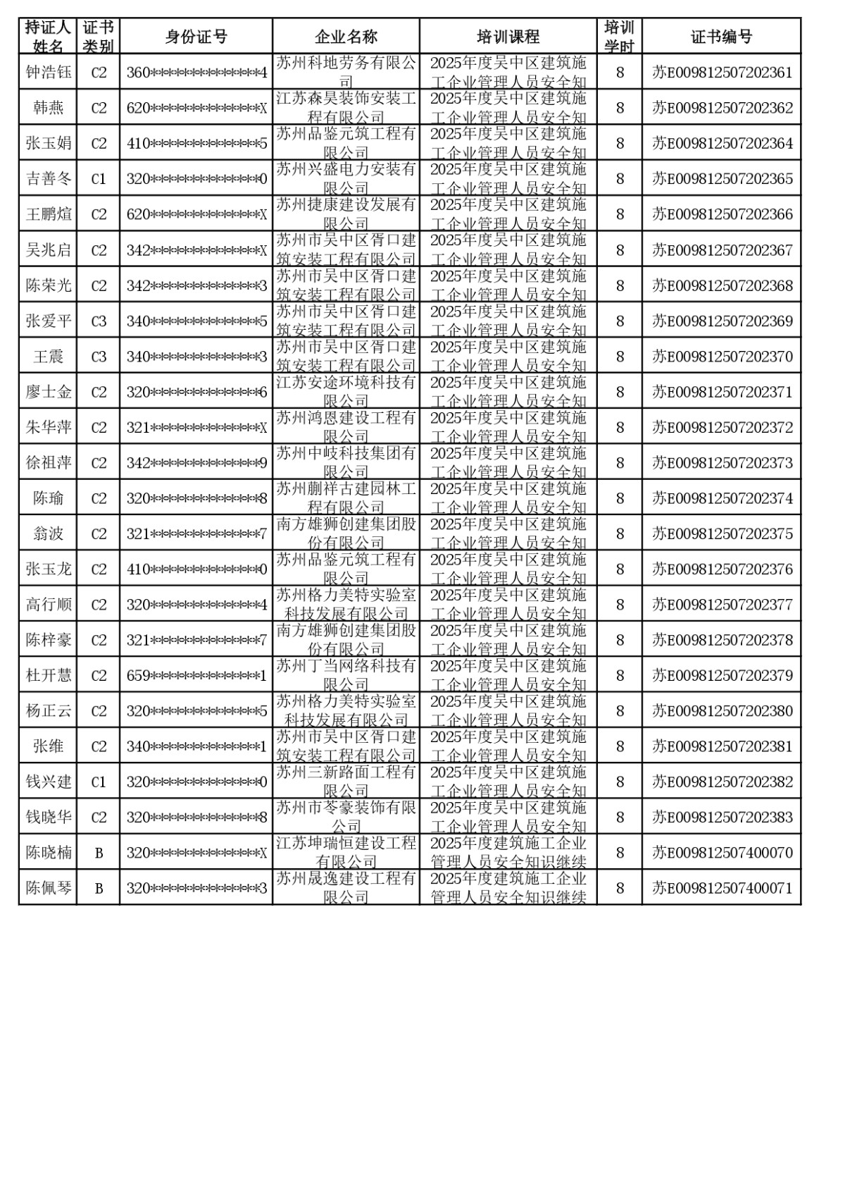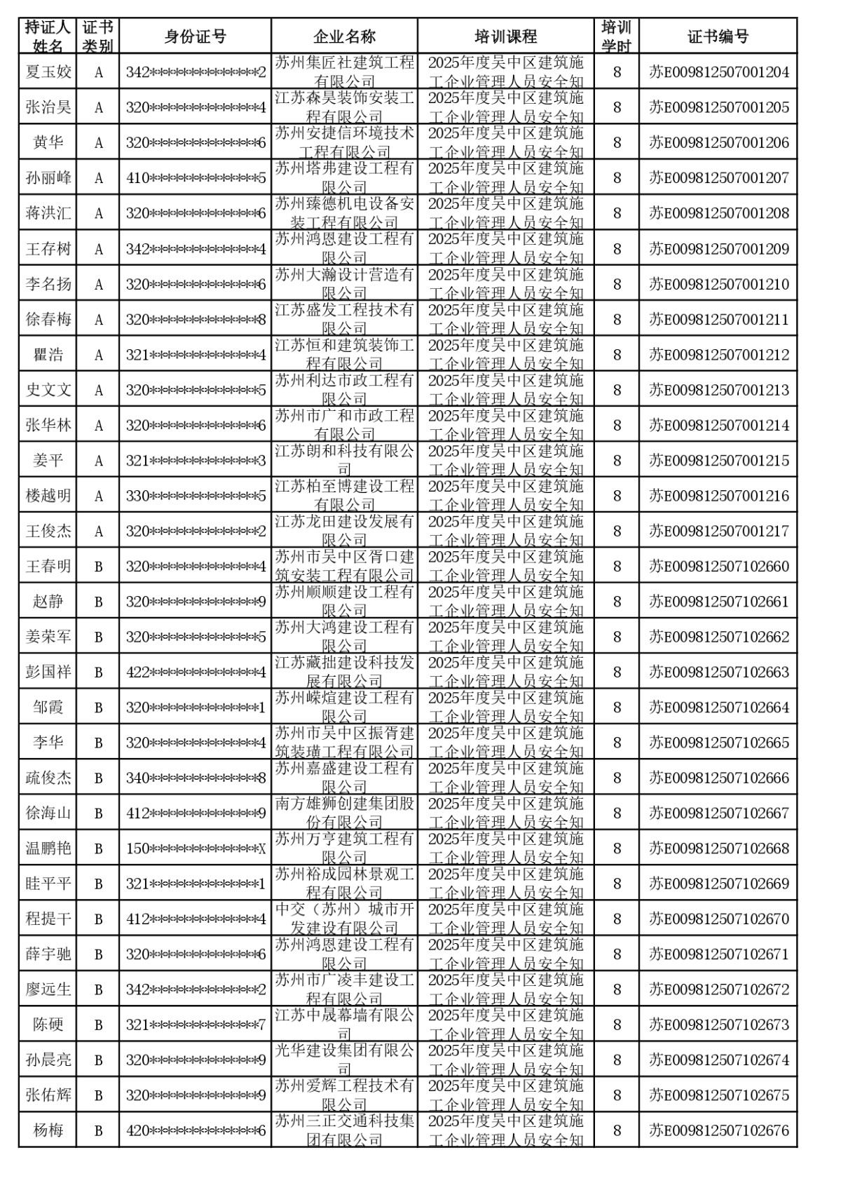 安全员继续教育合格公示(截至2025年12月4日24:00已学完学员)