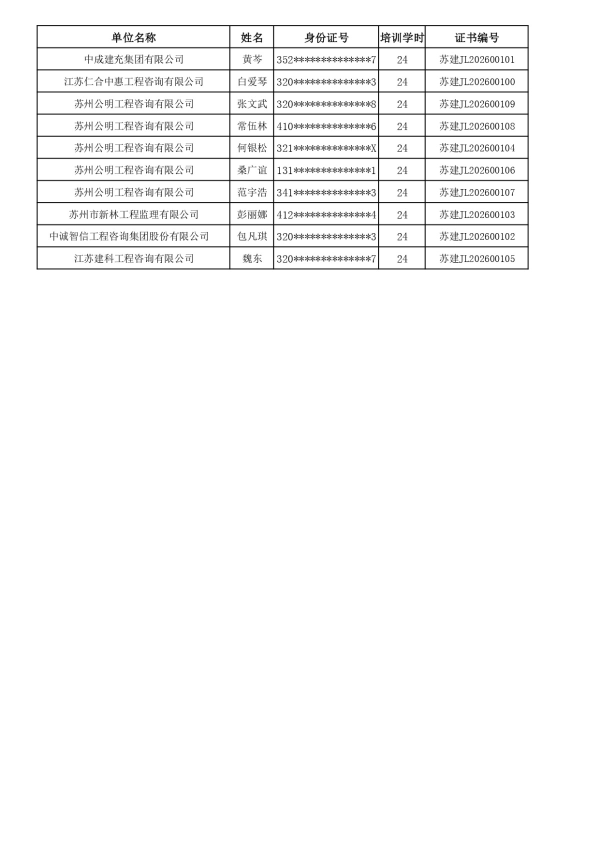 2026年监理人员业务培训完成名单公示(截止到2026年03月10日学习网上发放证书的学员)