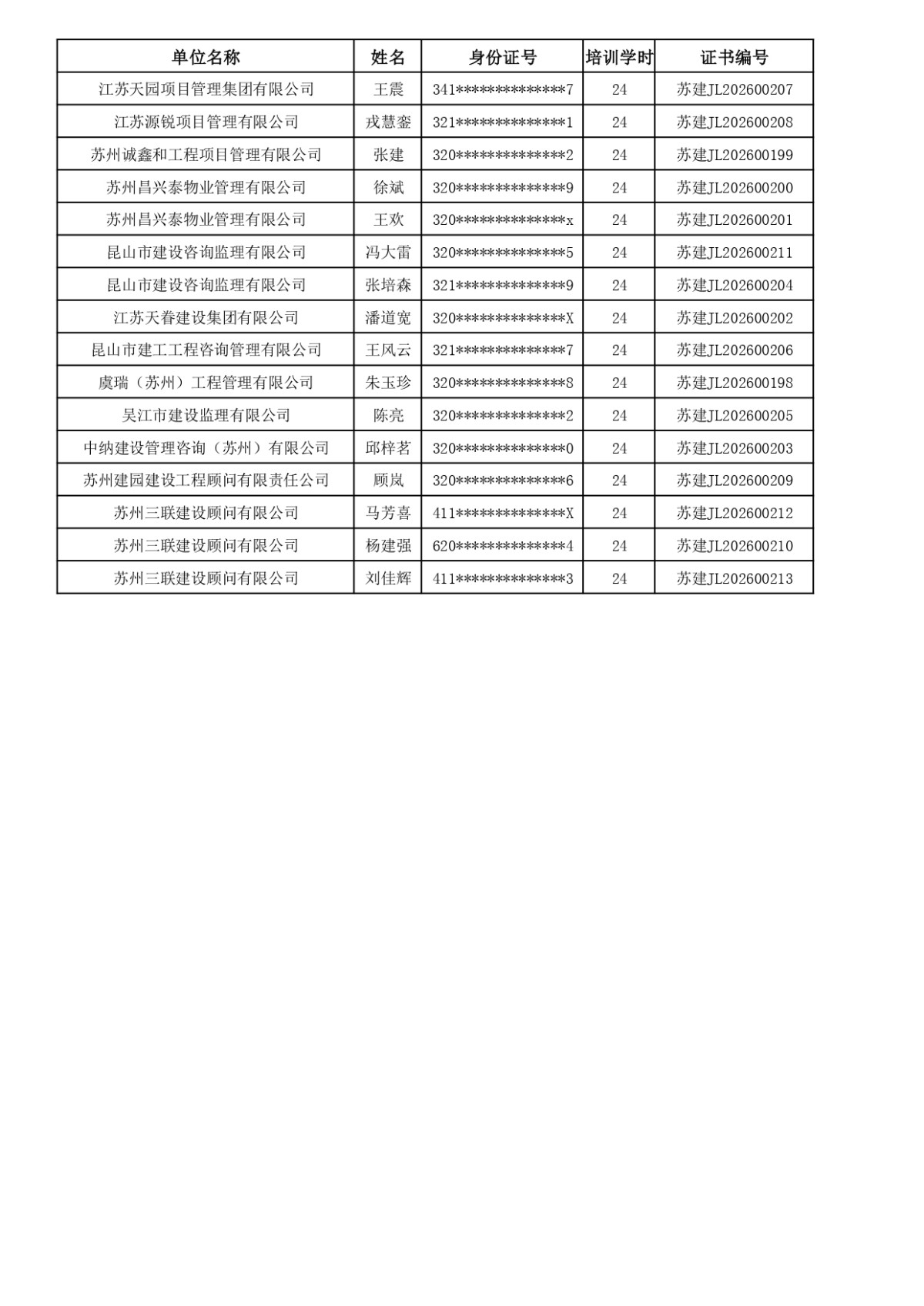 2026年监理人员业务培训完成名单公示(2026年04月07日)