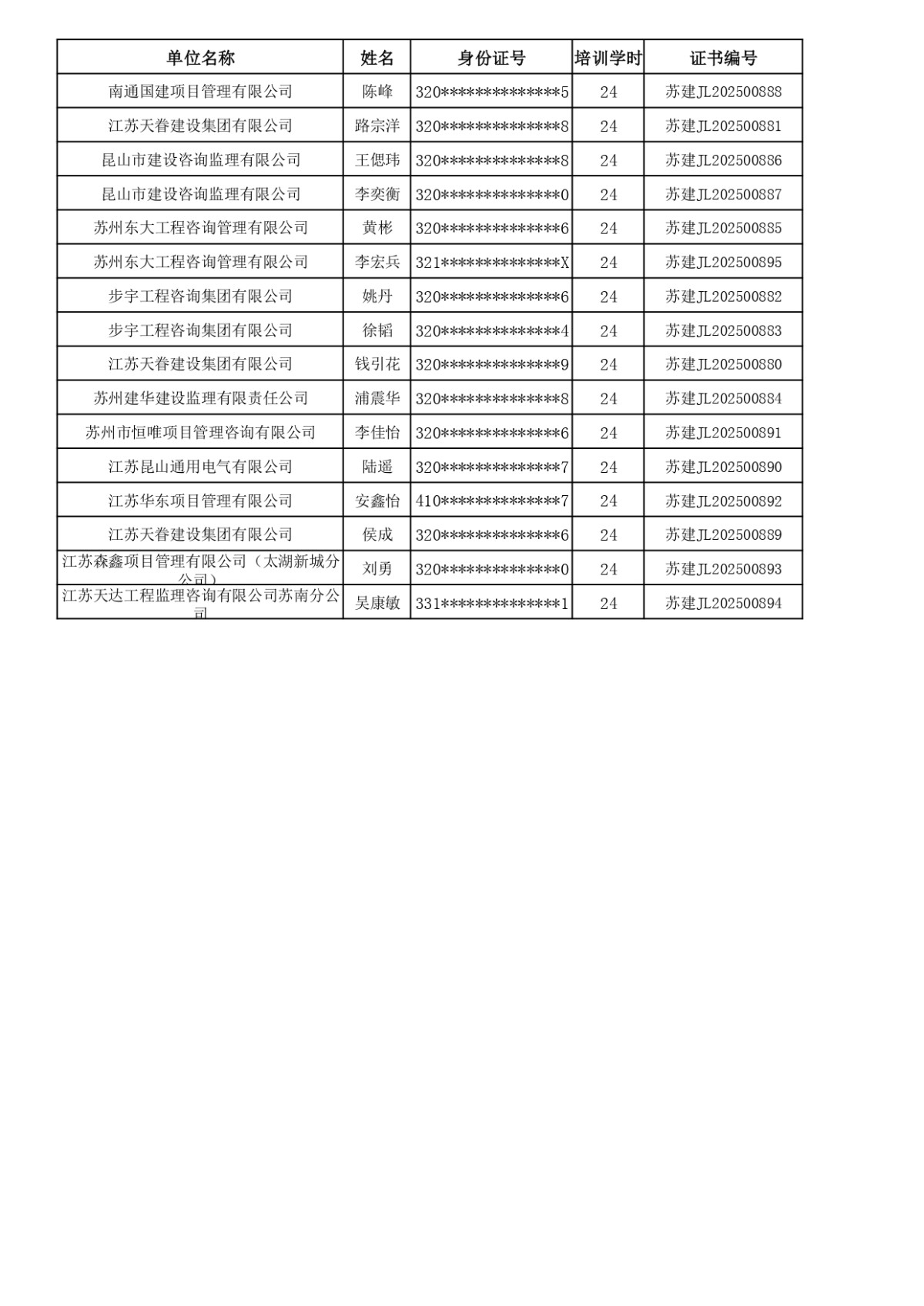 2025年监理人员业务培训完成名单公示(截止到2025年09月23日学习网上发放证书的学员)