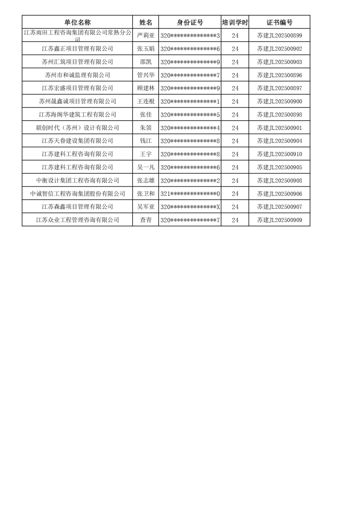 2025年监理人员业务培训完成名单公示(截止到2025年09月30日学习网上发放证书的学员)