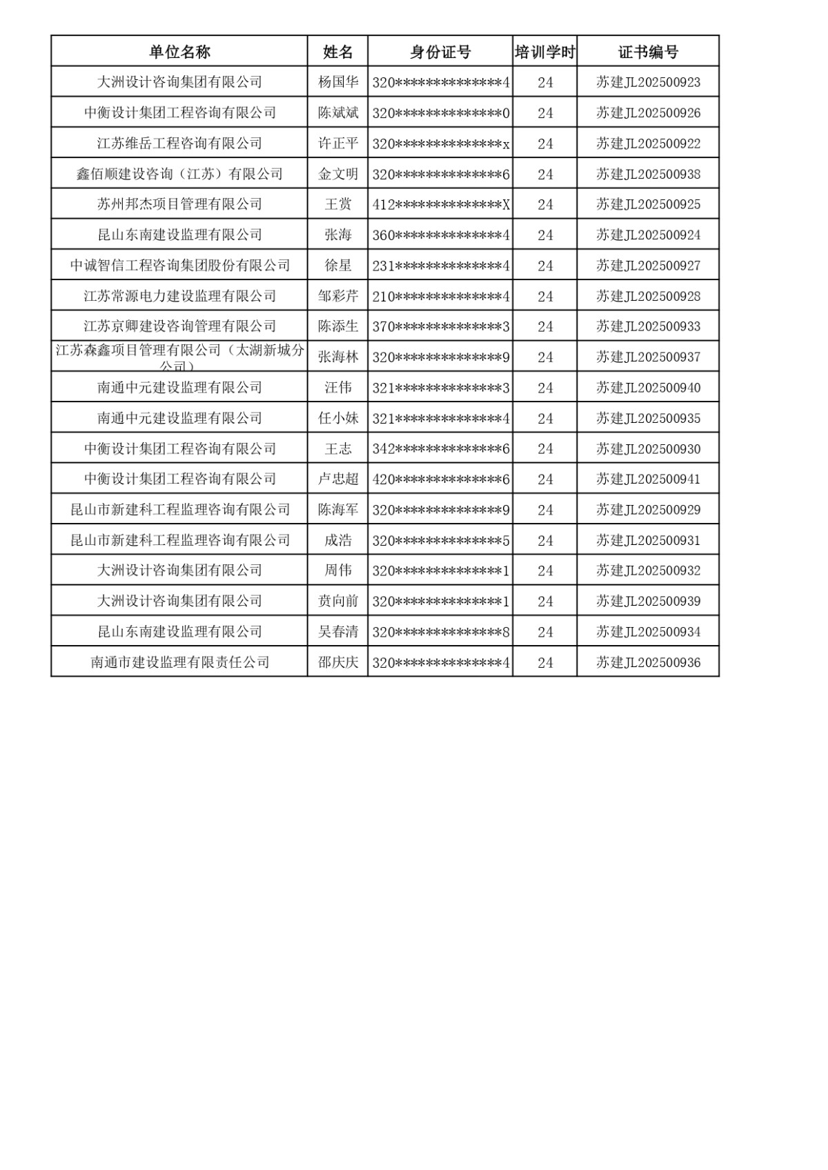 2025年监理人员业务培训完成名单公示(截止到2025年10月22日学习网上发放证书的学员)