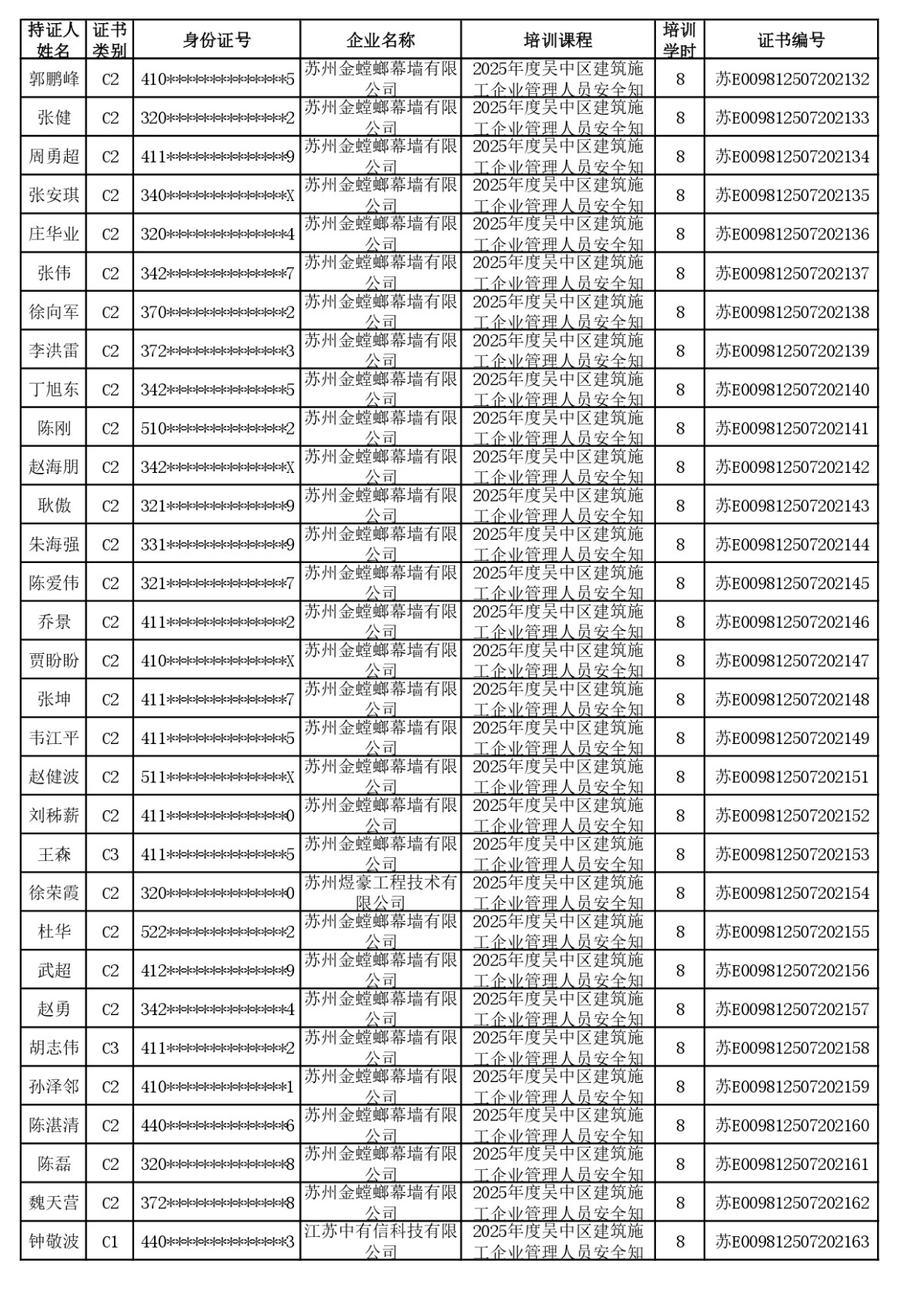 安全员继续教育合格公示(截至2025年10月31日13:00已学完学员)