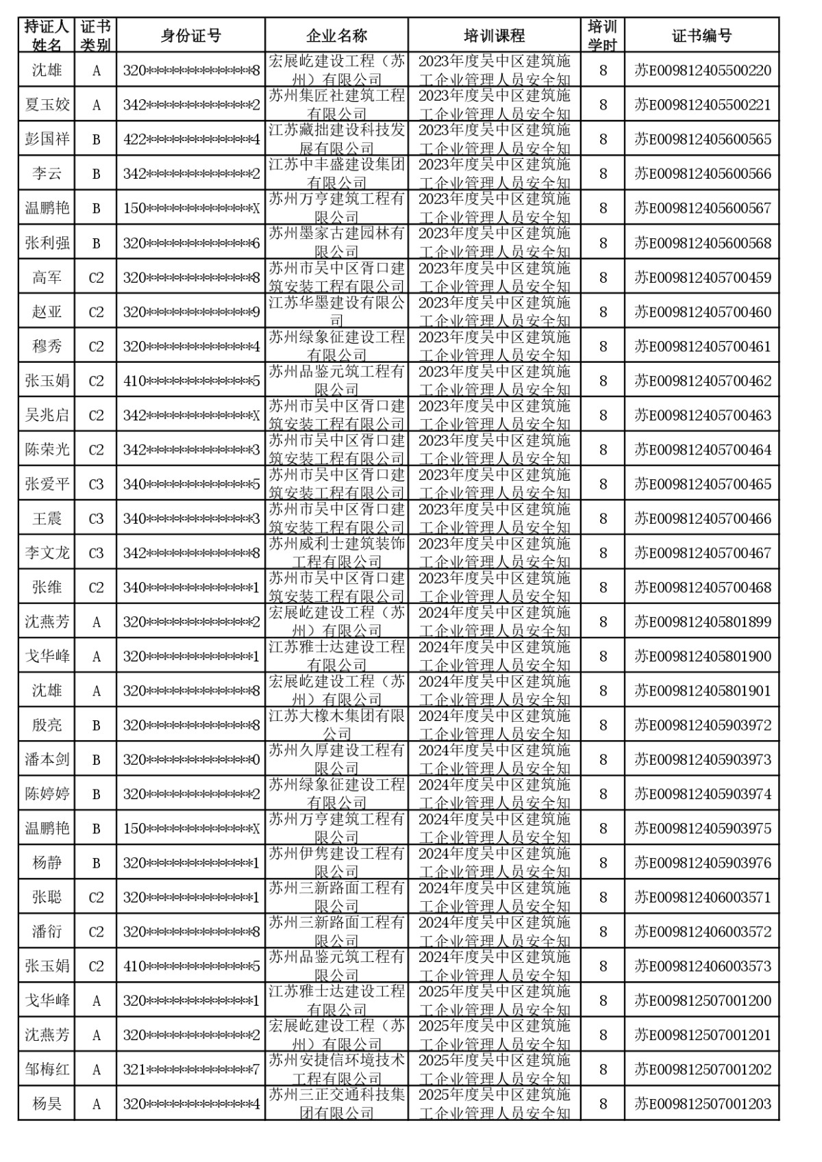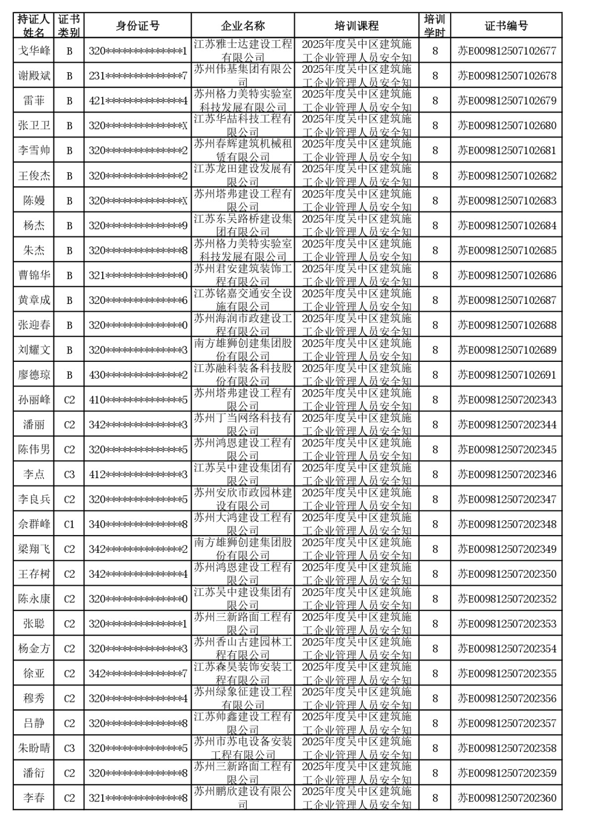 安全员继续教育合格公示(截至2025年12月4日24:00已学完学员)