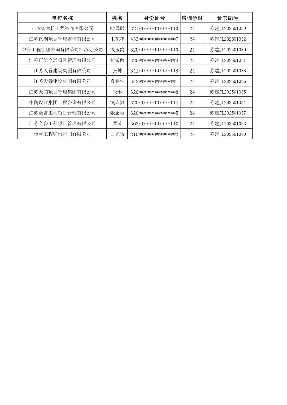 2025年监理人员业务培训完成名单公示(截止到2025年12月16日学习网上发放证书的学员)