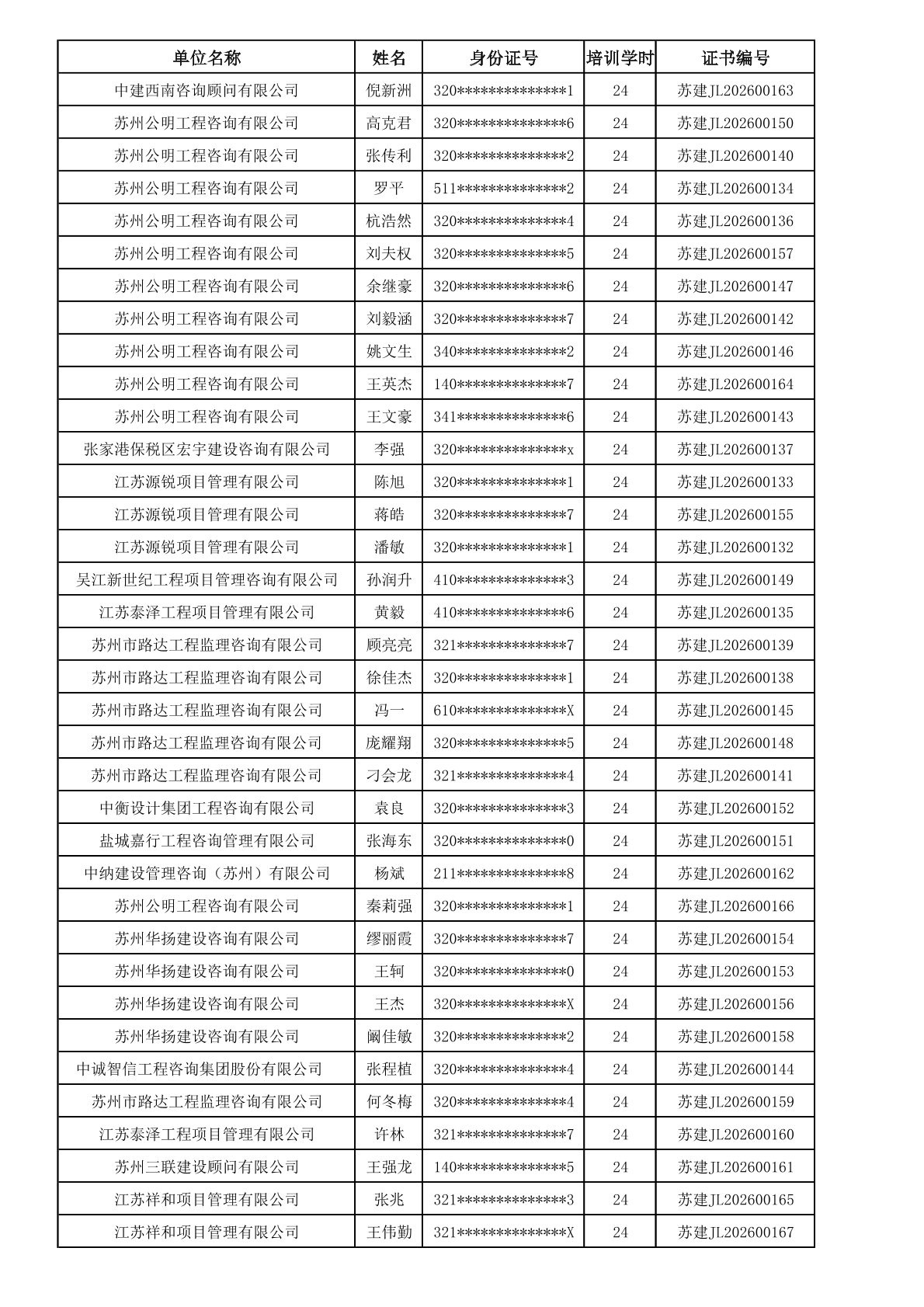 2026年监理人员业务培训完成名单公示(截止到2026年03月24日学习网上发放证书的学员)
