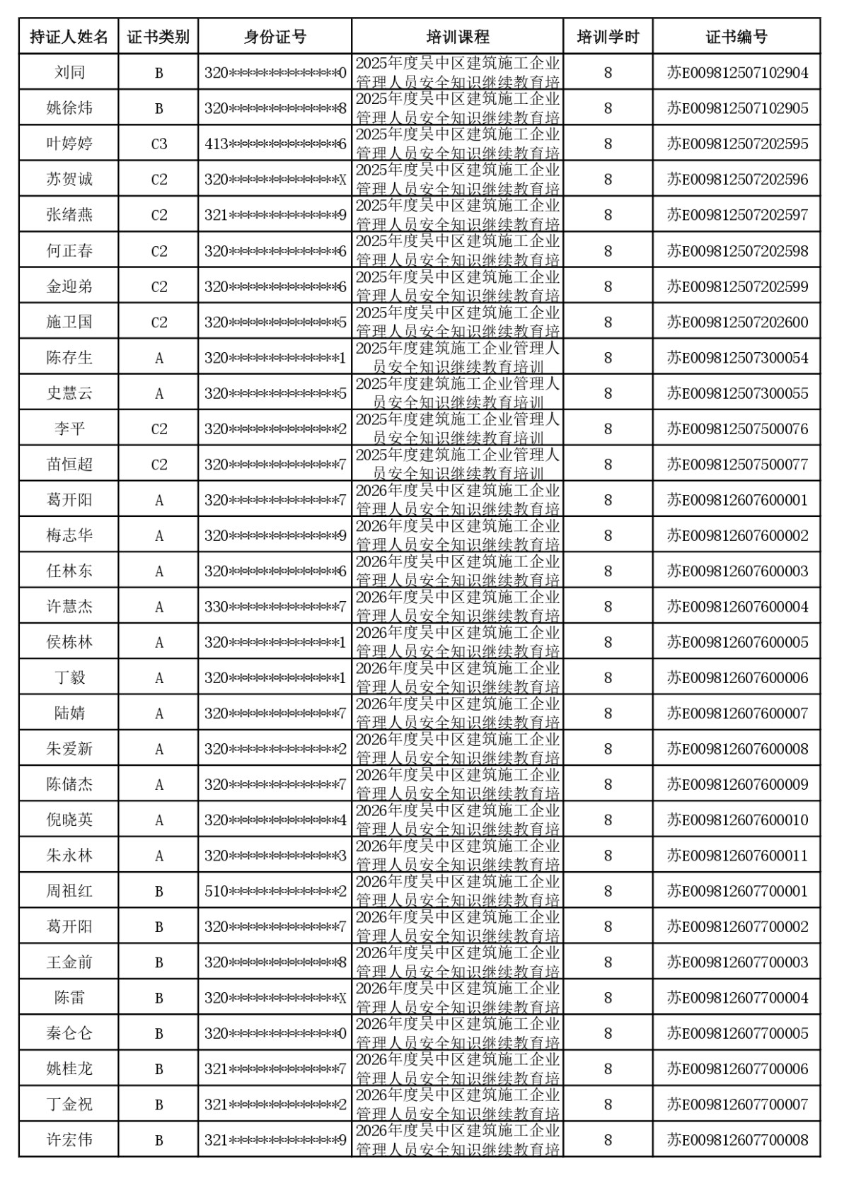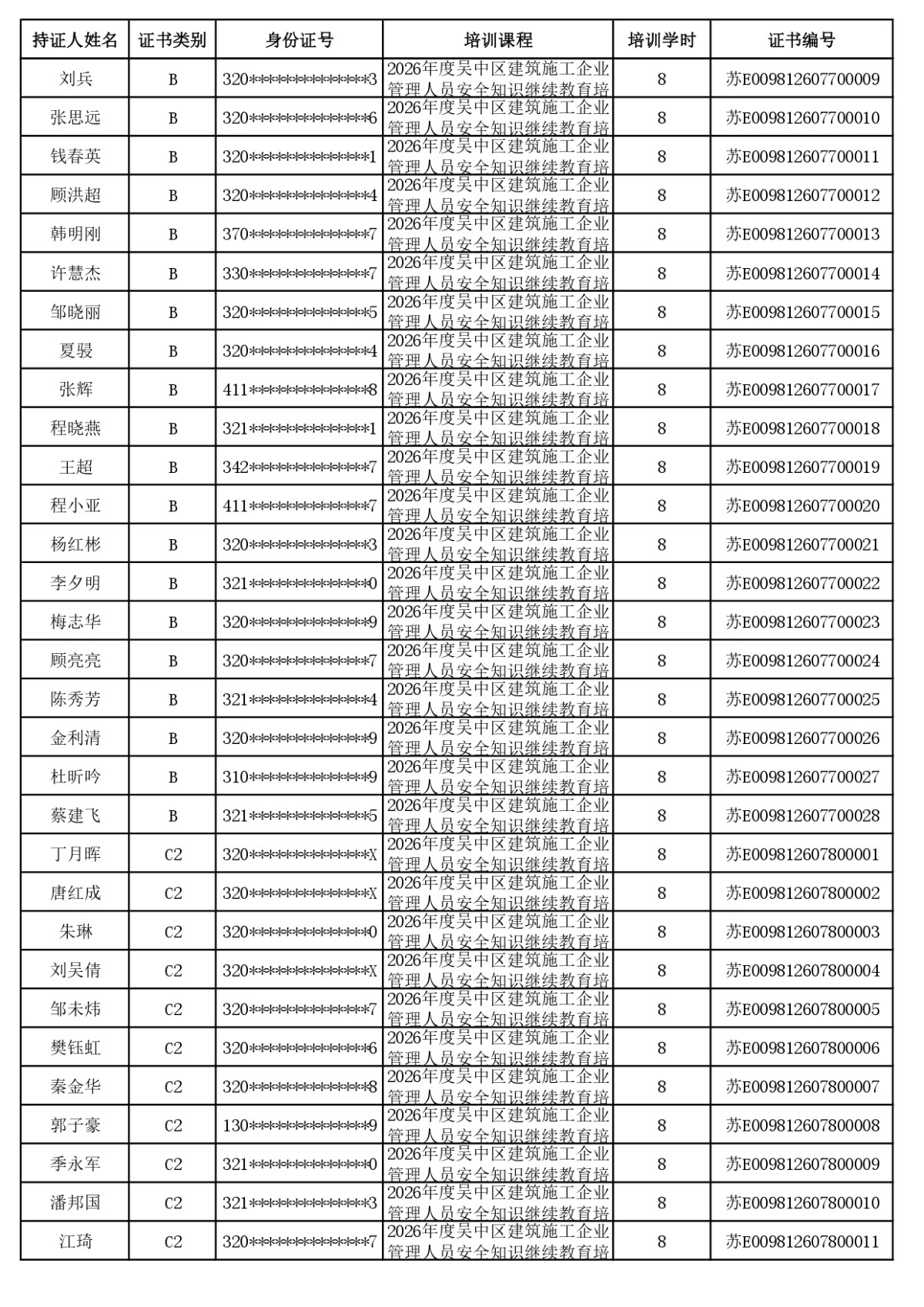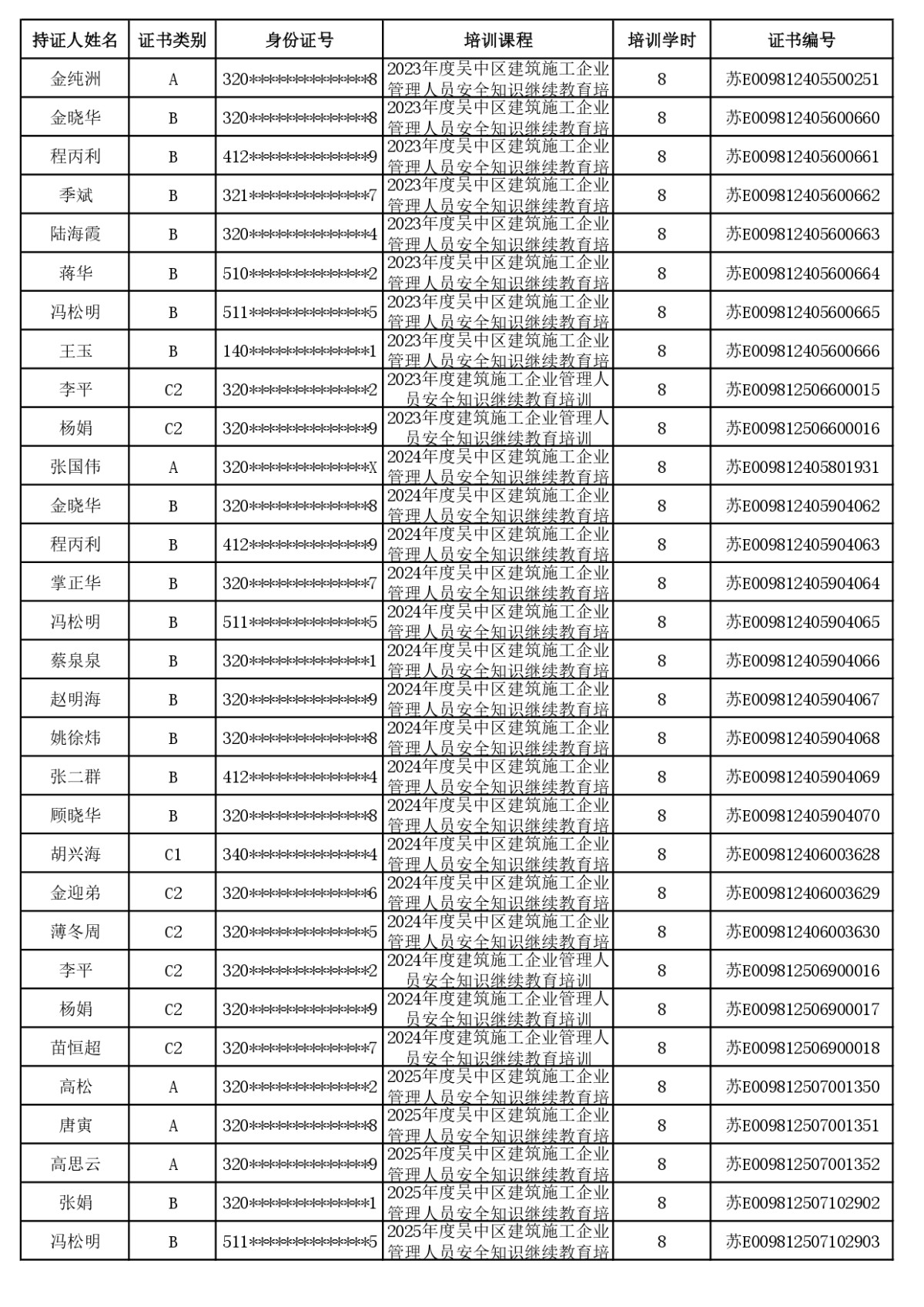 安全员继续教育合格公示(截至2026年4月23日24:00已学完学员)